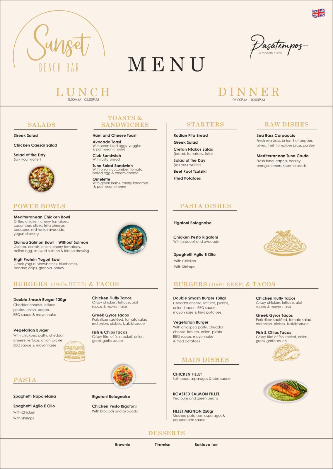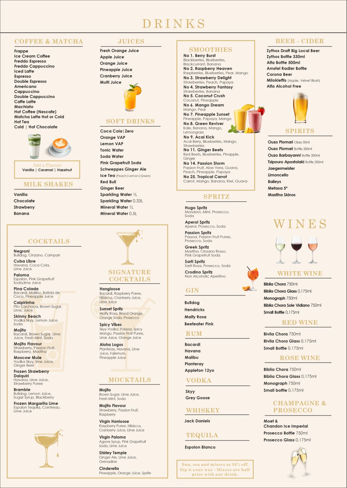 Whether it’s a Freddo Espresso, a Cuba Libre or something delicious to eat, you’re sure to find something you’re in the mood for here. With a view of the water and the sunset in the evening, you can really enjoy your time here.